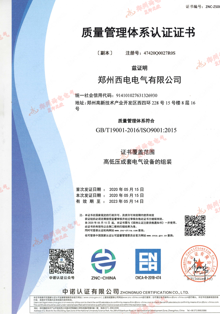 質量管理體系認證證書
