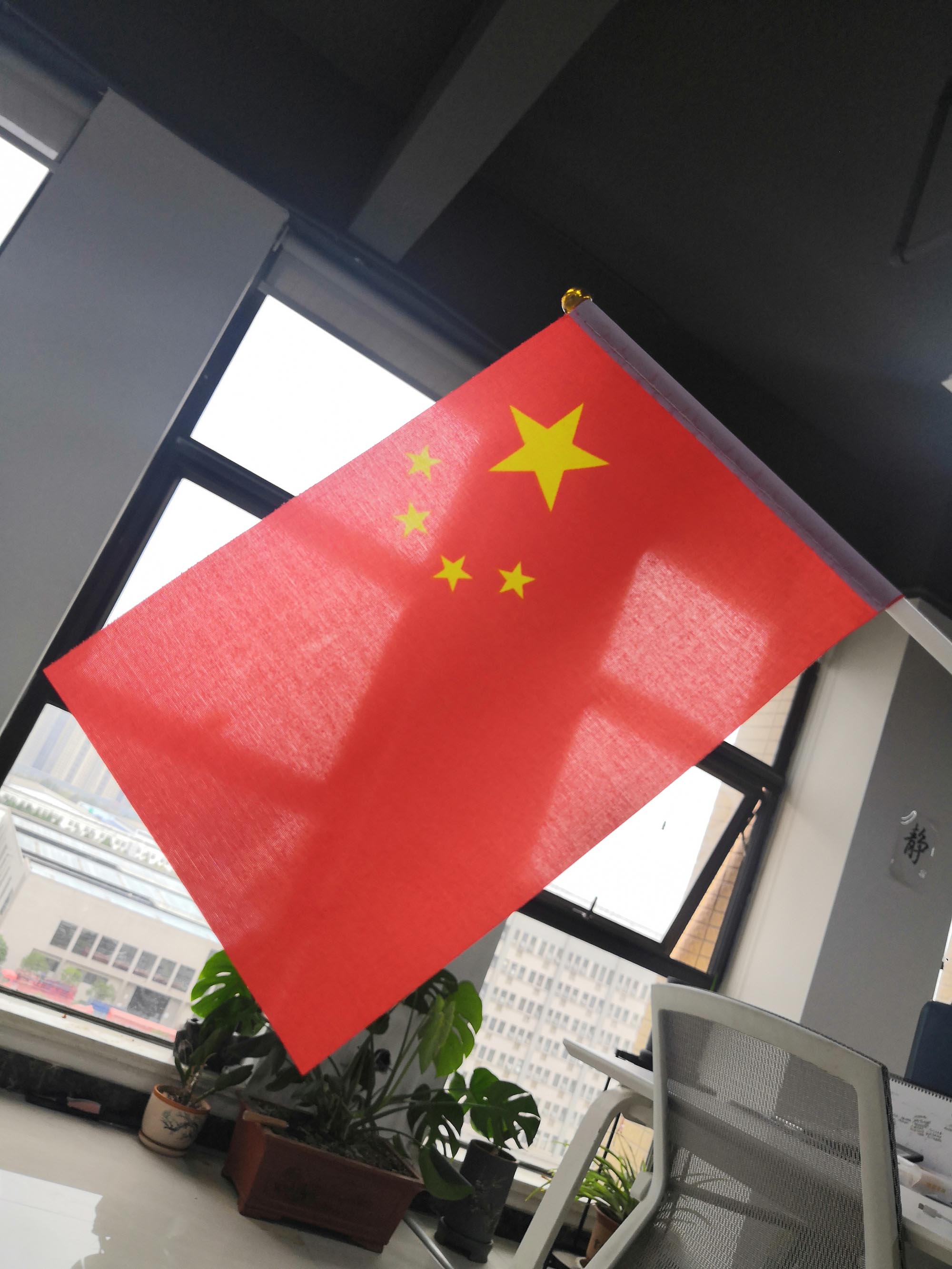 不僅準(zhǔn)備了大大的紅旗,還有小小的紅旗。員工人手一份,保證滿足全體員工的愛國心。