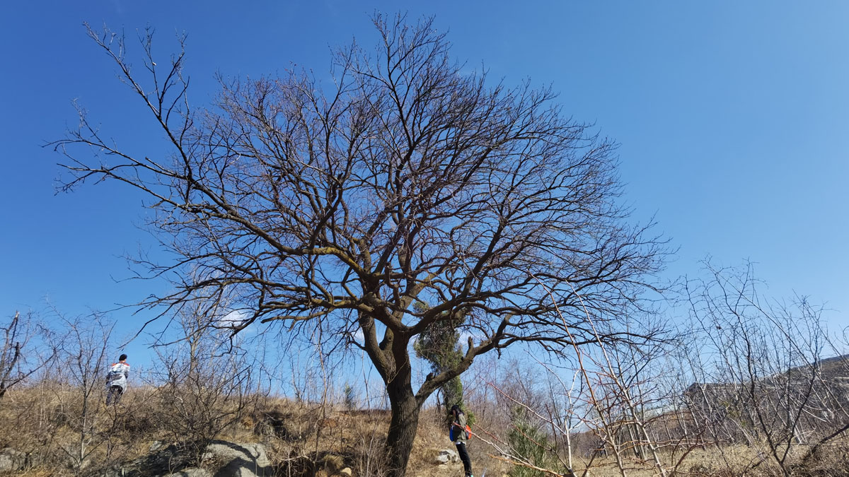 路過一棵長得非常漂亮的樹,滿樹的花苞,據(jù)說是杏樹。周圍還有和它長得很像的小樹,同樣滿樹花苞,應(yīng)該是它的樹子樹孫。