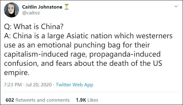 7月20日,一位澳大利亞網(wǎng)友有關(guān)“中國是什么”的自問自答,在推特引發(fā)熱烈討論。截至目前,該推文已獲近2000點贊,網(wǎng)友紛紛在評論區(qū)貼出自己對該問題的解答。