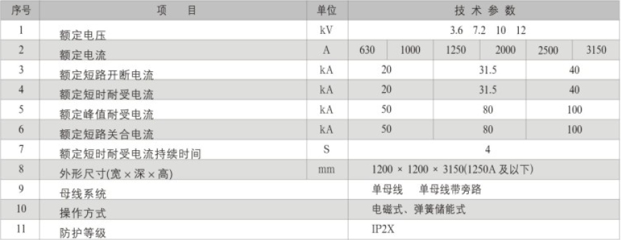 適用于3.6~12KV三相交流50HZ單母線和單母線帶旁路的電力系統(tǒng)作為接受與分配電能的配電裝置。