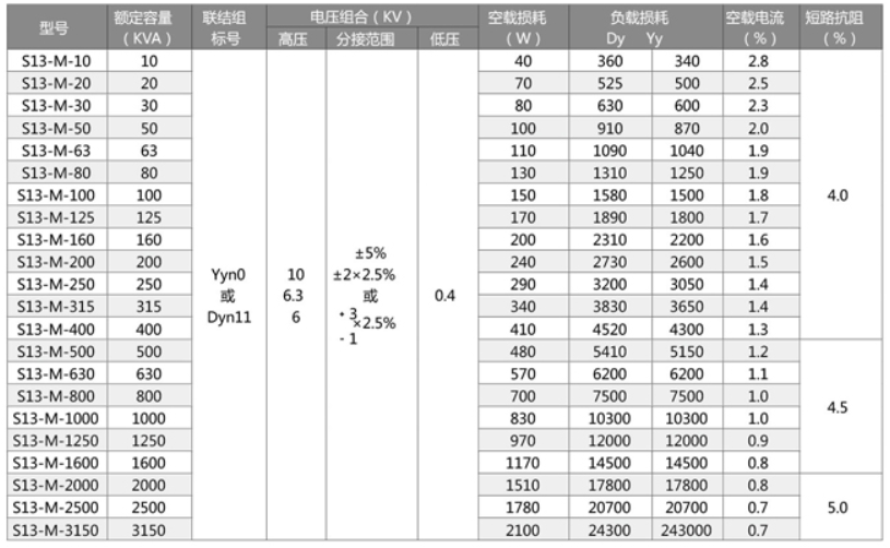 S13型是我公司在原S11型配電變壓器基礎上,通過新材料、新工藝的研究運用及自主創(chuàng)新與技術引進結合的方式,通過對鐵芯及線圈結構的優(yōu)化創(chuàng)新設計,達到降低空載損耗及噪聲的目的。自主開發(fā)的產(chǎn)品空載損耗平均下降了37%。噪聲水平與現(xiàn)行國標JB/T10088—2004比較平均下降20%,產(chǎn)品性能水平達到國內(nèi)先進水平。執(zhí)行標準如下: